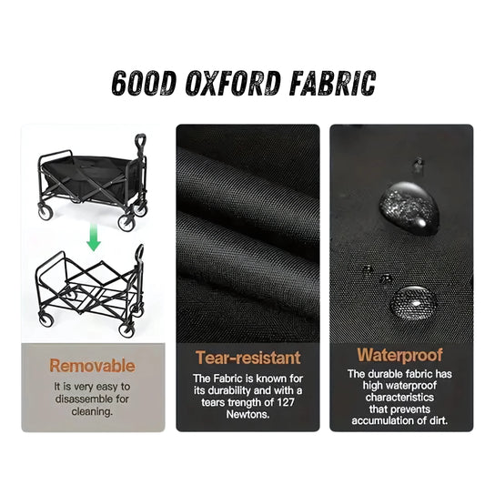 Collapsible Folding Wagon Cart | Heavy Duty Beach Cart with Adjustable Handle & Large Storage (220lbs Capacity)