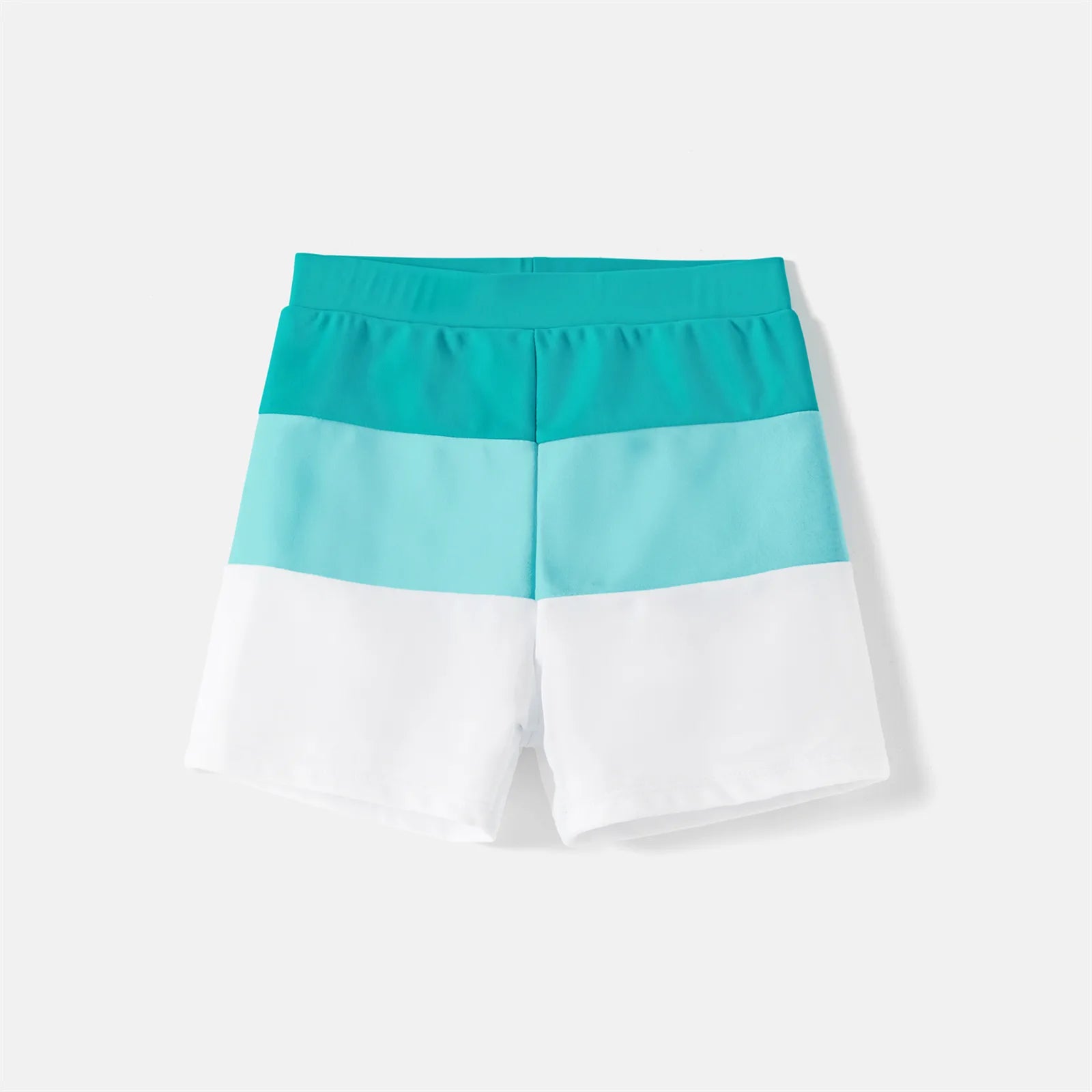 - Stylish Colorblock Design: A vibrant and trendy colorblock pattern adds a bold touch to your family swimwear, perfect for family photos or poolside fun.